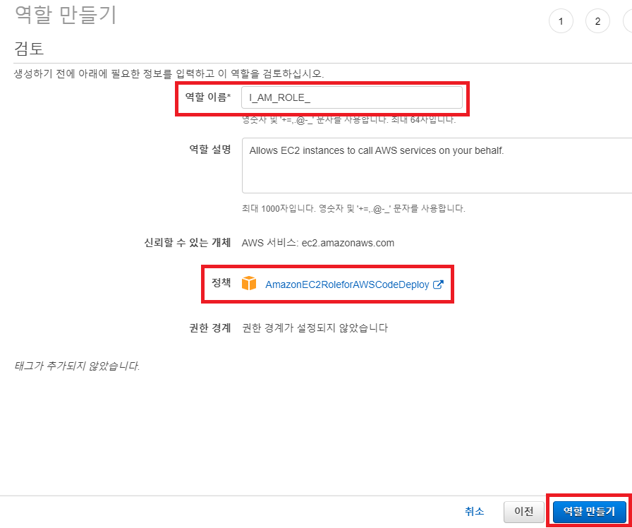 저장해주면 EC2가 CodeDeploy를 받아들일 준비가 절반은 끝난 것이다.