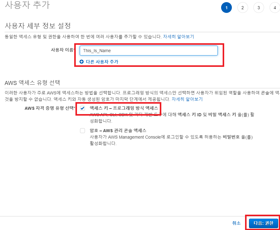 입력을 순차적으로 해주면 된다. region name의 경우 S3 버킷 정도에서 말했지만, 맞춰주지 않았을 경우 자신에게 맞게 잘 입력해줘야 한다.