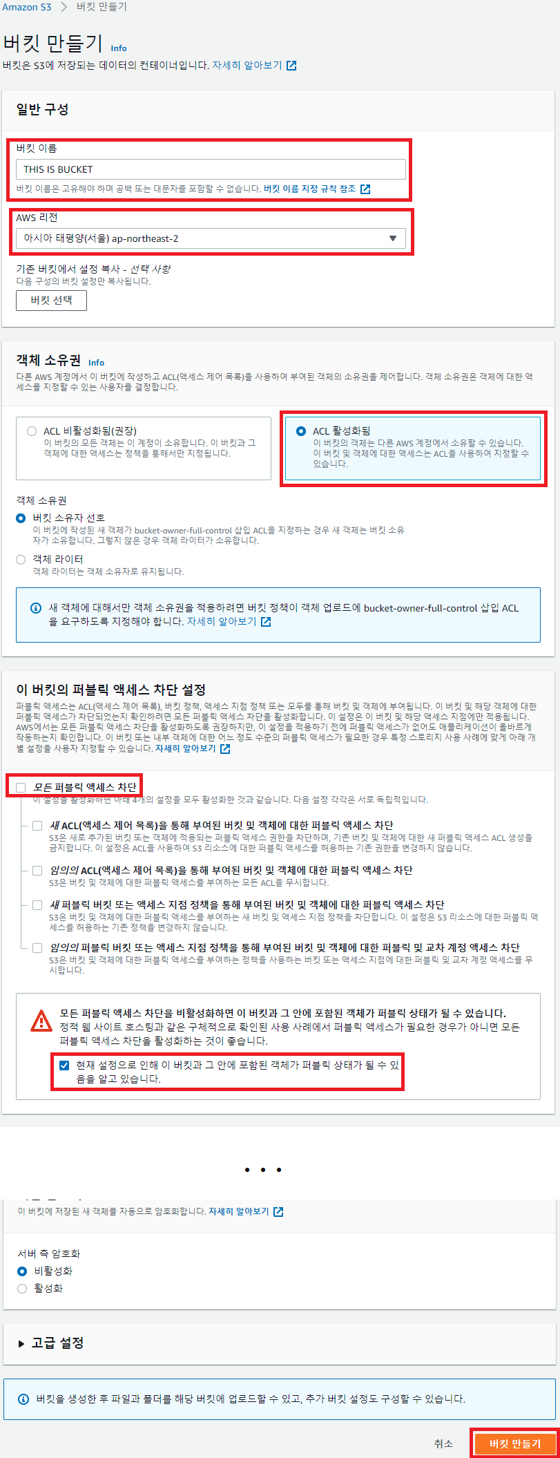 3. ACL 활성화됨 : 버킷은 오픈마인드가 중요한거다.